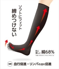 締め付けないのにむくみを改善します! 一般的な着圧くつ下とは違い、強い締め付けはありません。 特殊編構造により、足先からふくらはぎを段階的にゆるくフィットさせ、すね・ふくらはぎの筋肉を効果的に動かし、マッサージのように刺激を与えます。 また足先が自然に上がるようになっているため、ポンプアップ作用により働き滞った血液及びリンパの流れを促進してむくみを予防します。 ★一般医療機器第三種クラスⅠ取得