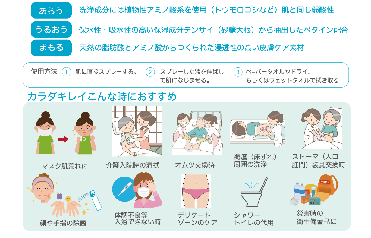 医師との共同研究・開発による洗浄型 保湿ローション 肌にスプレーして拭き取るだけで、99.9%除菌・洗浄・保湿が同時にできます。 医師との共同開発、臨床試験済みで、顔・手・全身に使用できます [内容量 本体:150ml・詰め替え用:1000ml]